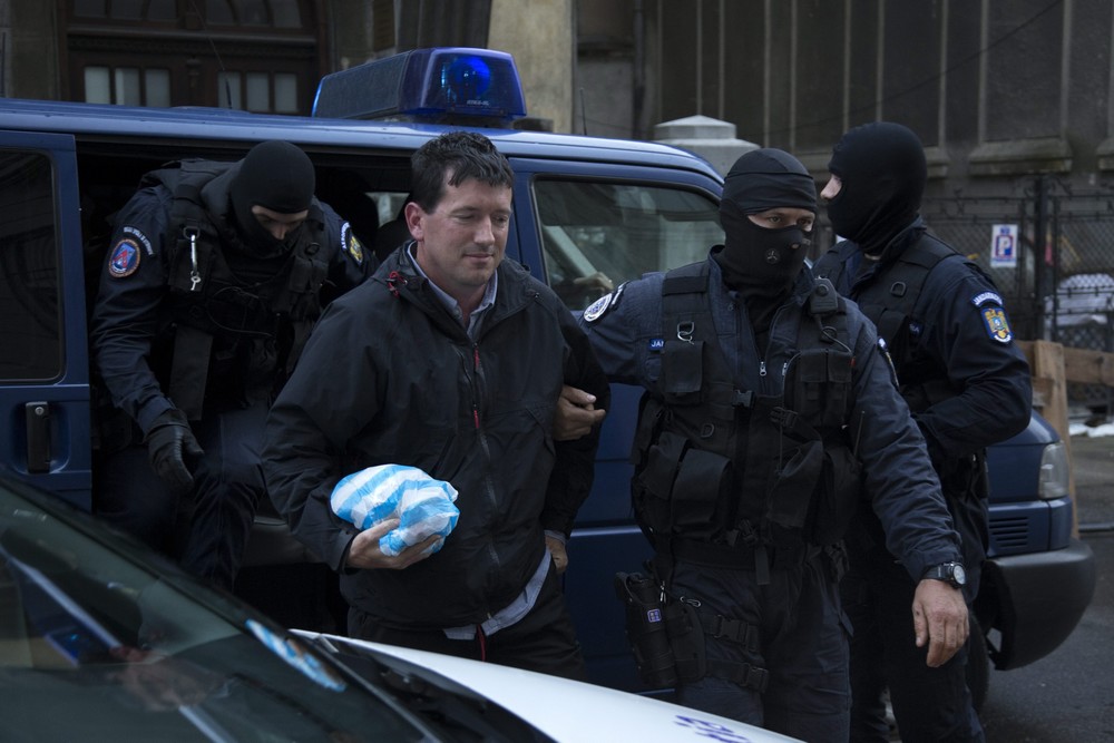 Ráduly Róbertet, Csíkszereda polgármesterét kihallgatásra kísérik a bukaresti korrupcióellenes ügyészségre a tegnapi nap folyamán. Fotó: Baranyi Ildikó